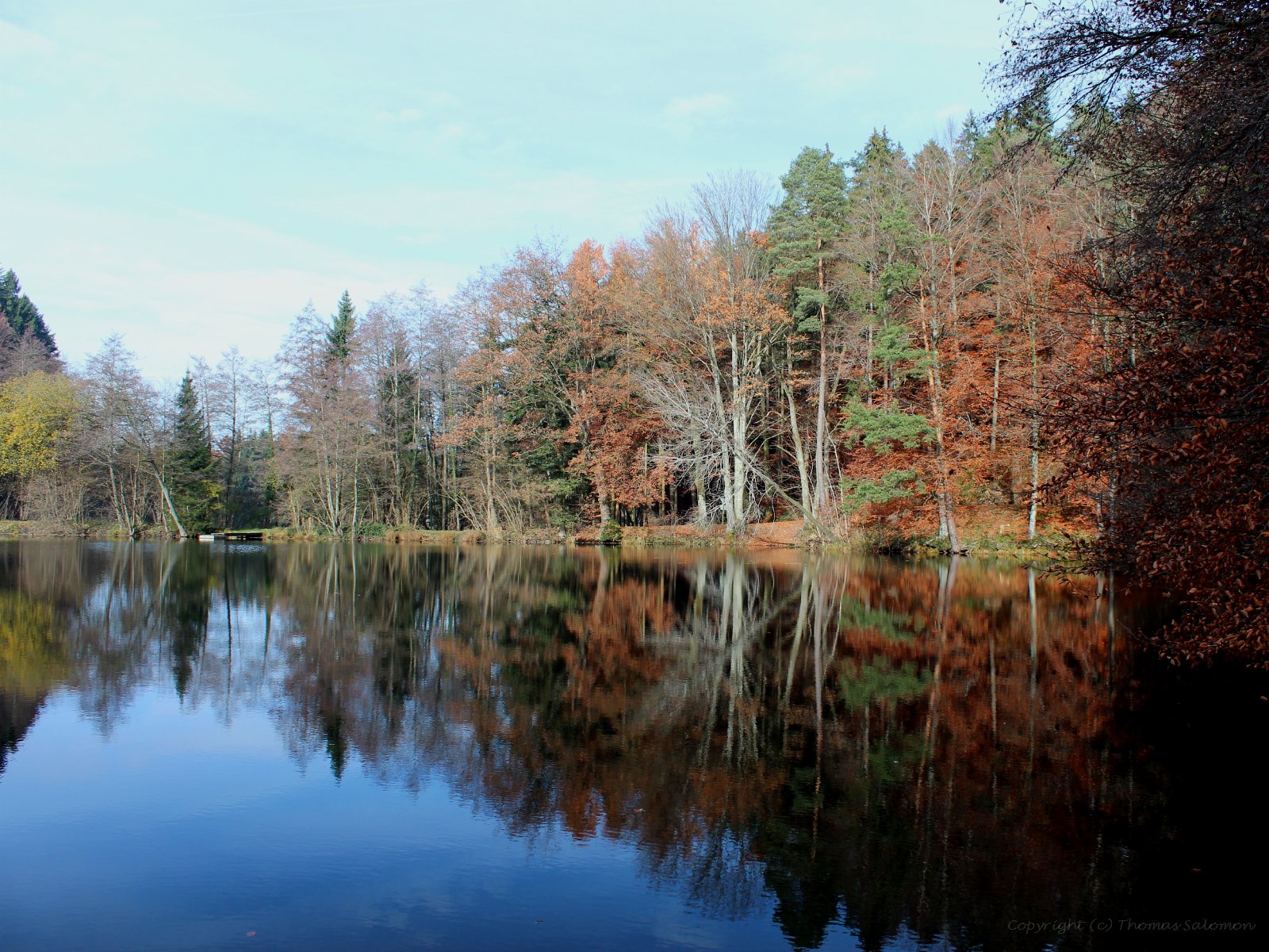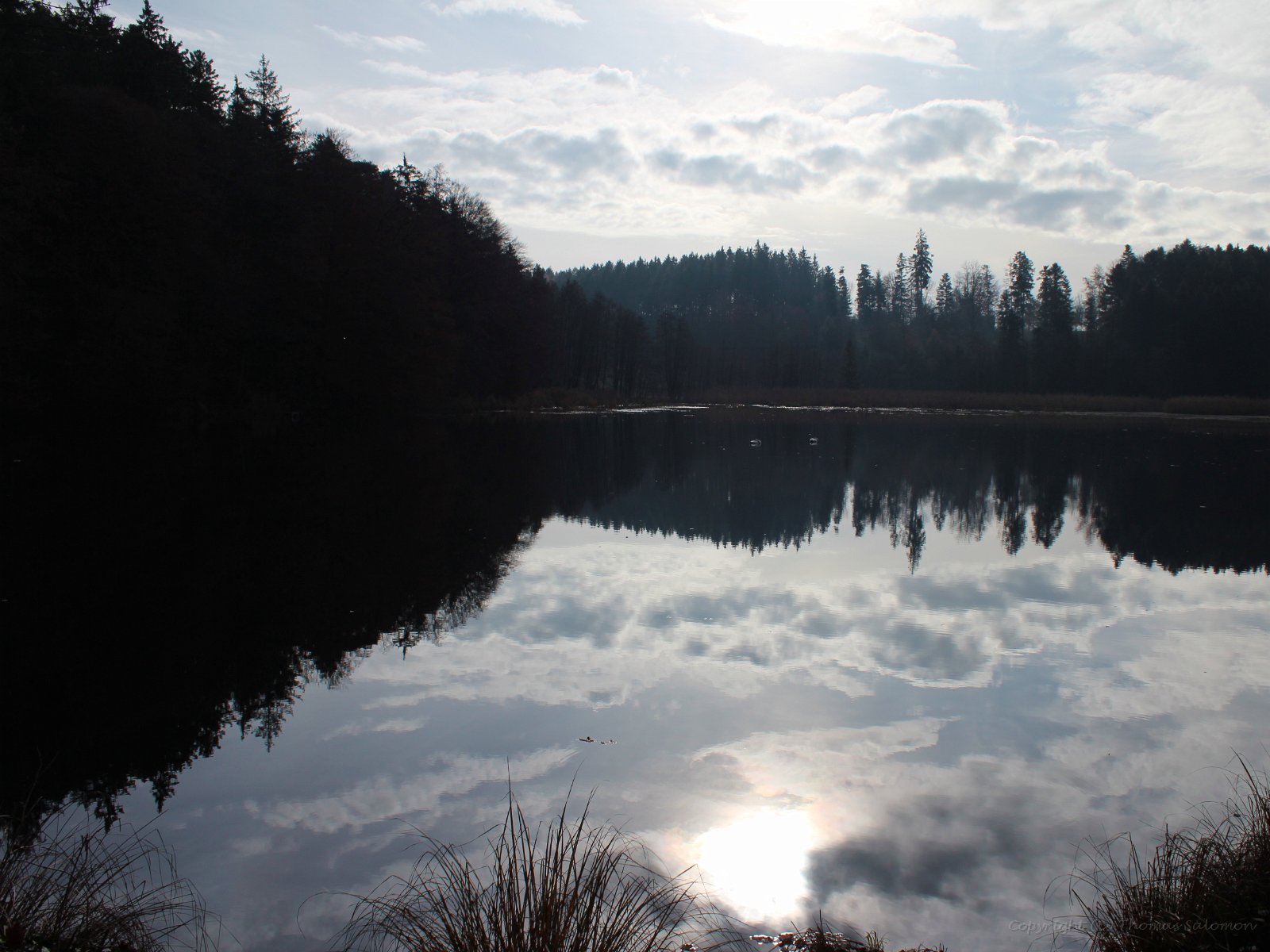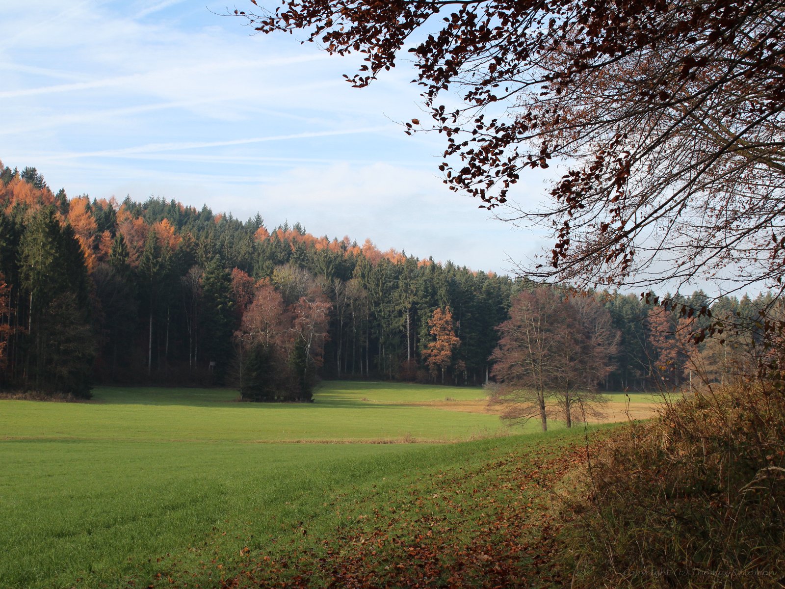 Ein Blick vom "Gemsenweiher" über die Wiese in Richtung Jägerweiher/Tobel. |
