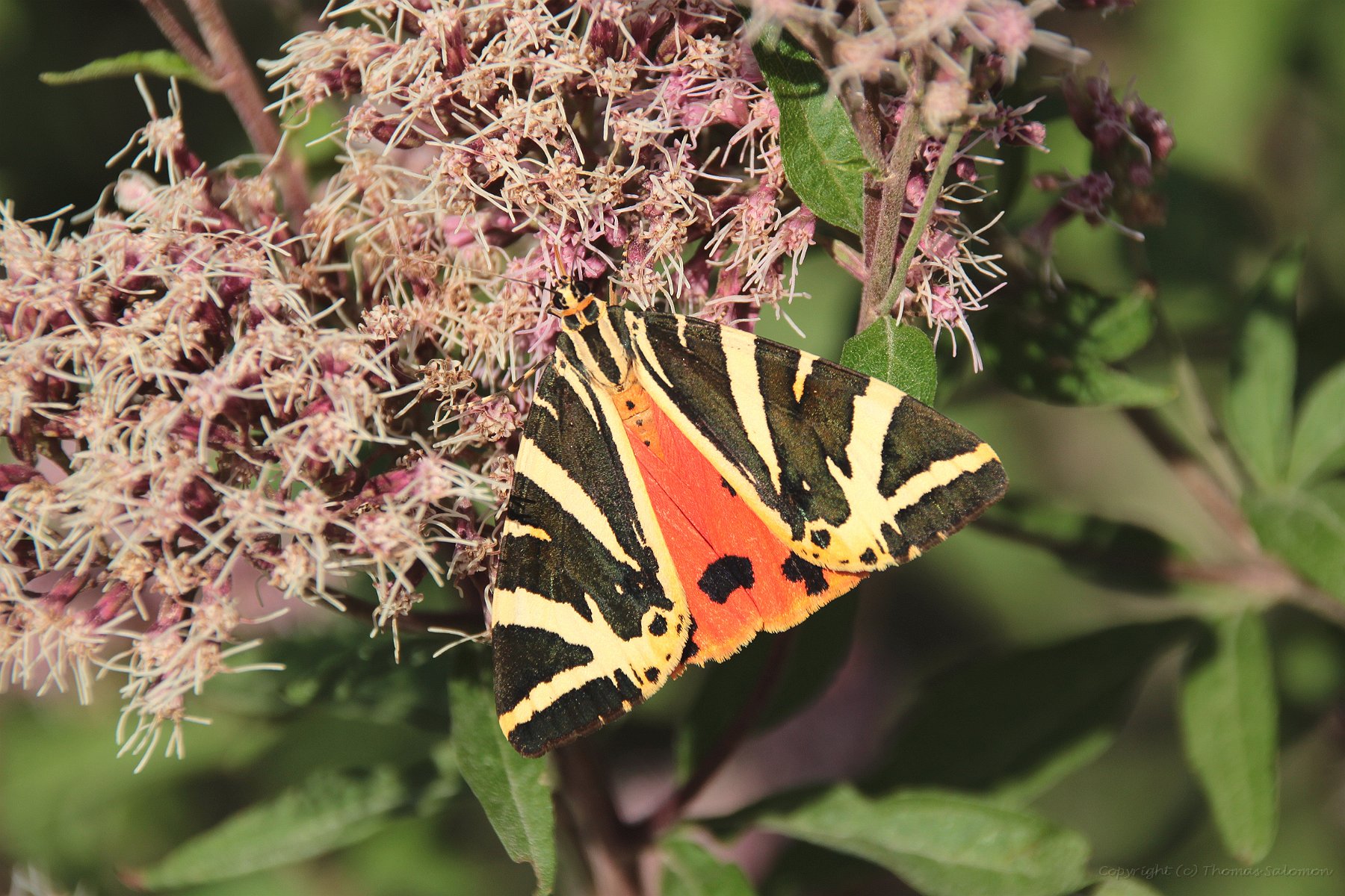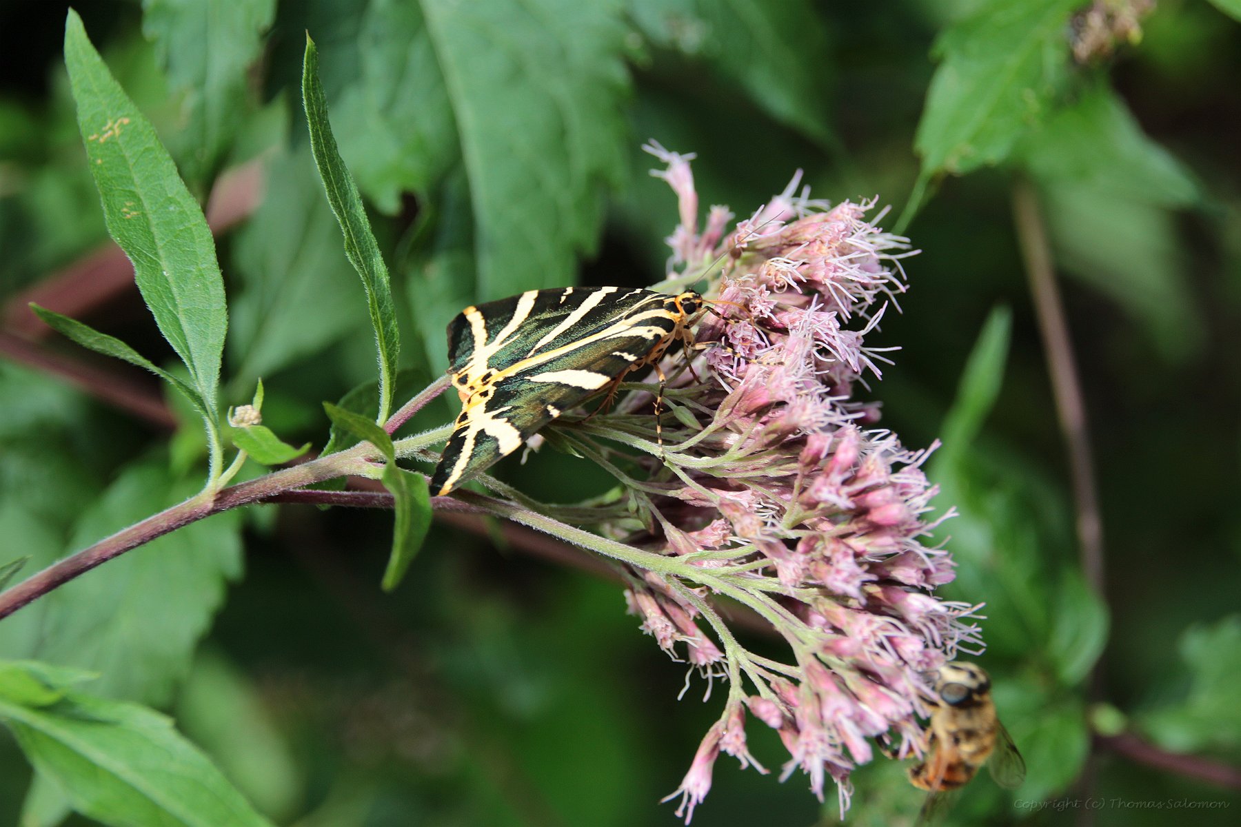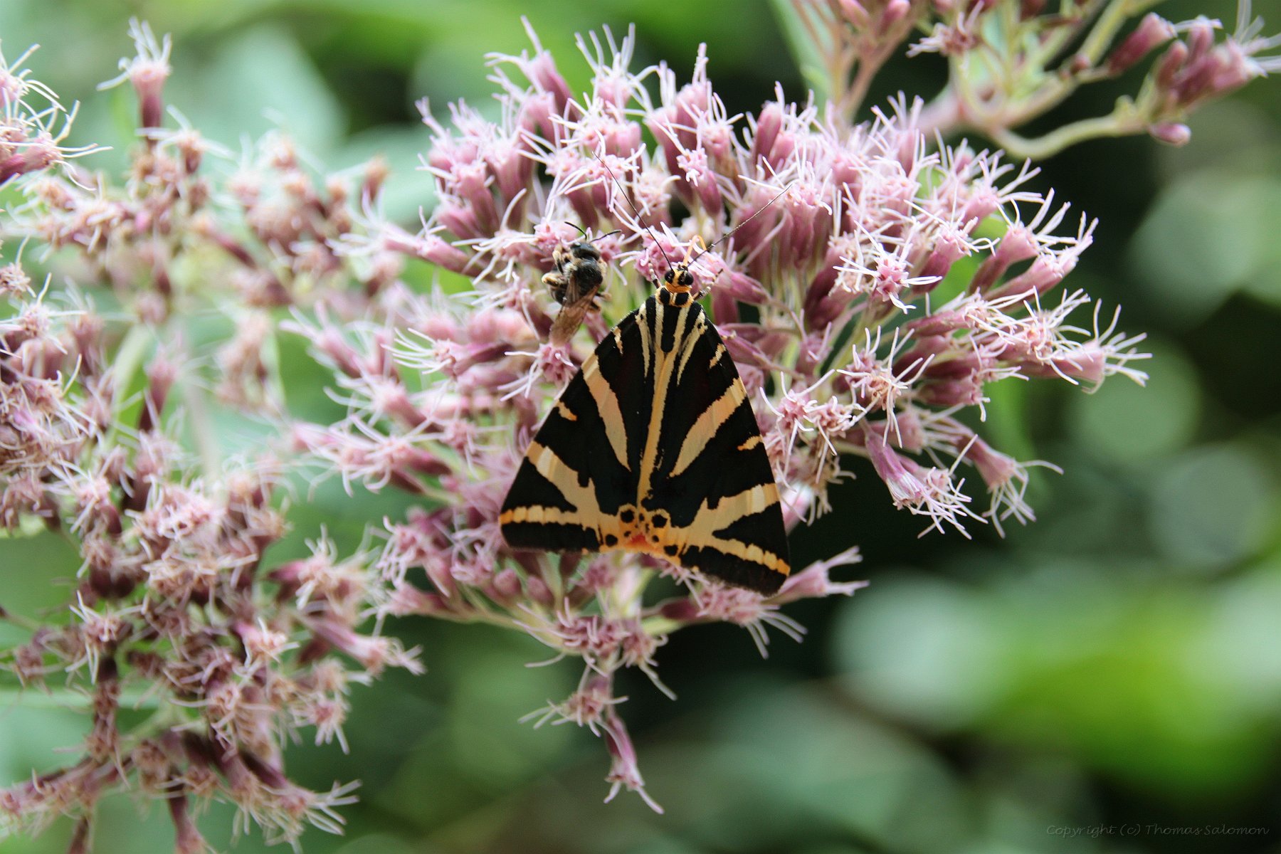 Russischer Bär (Euplagia quadripunctaria) an Dost (Sermerio am Gardasee, Italien) |