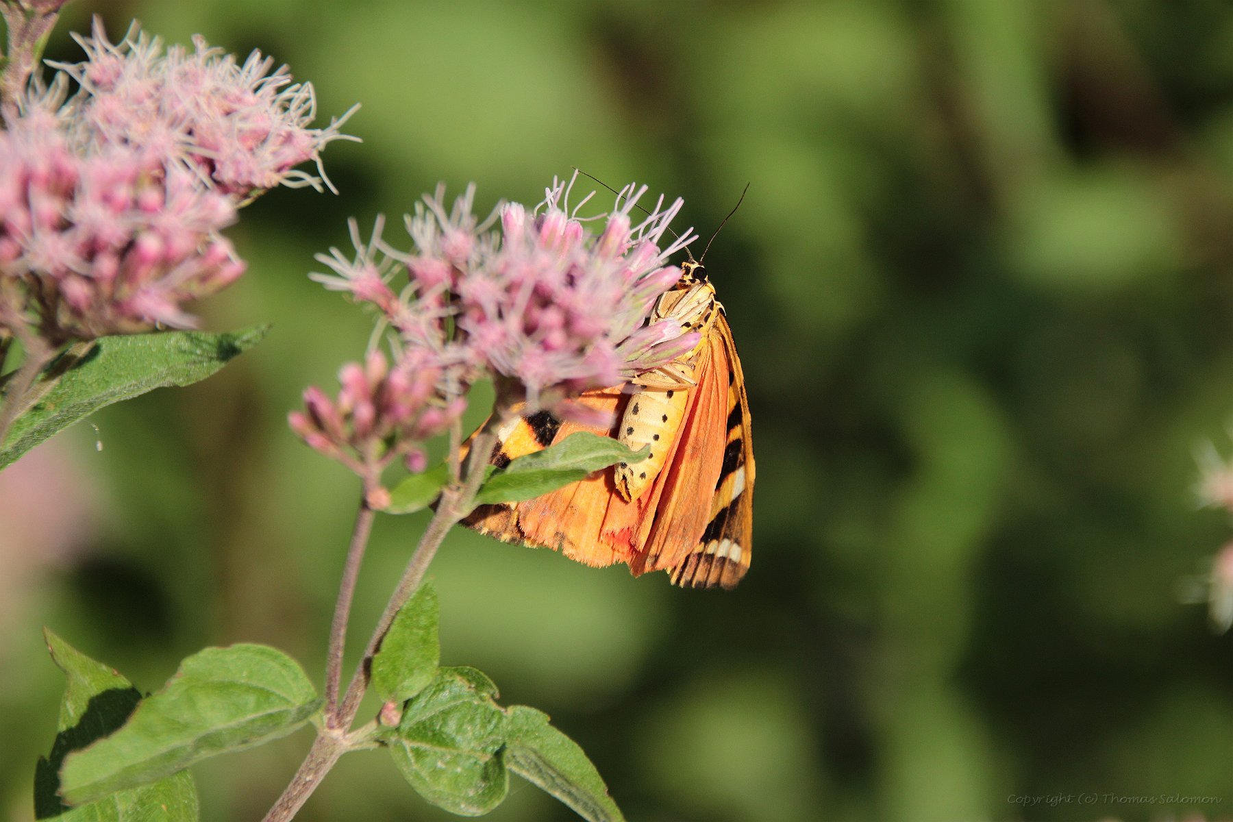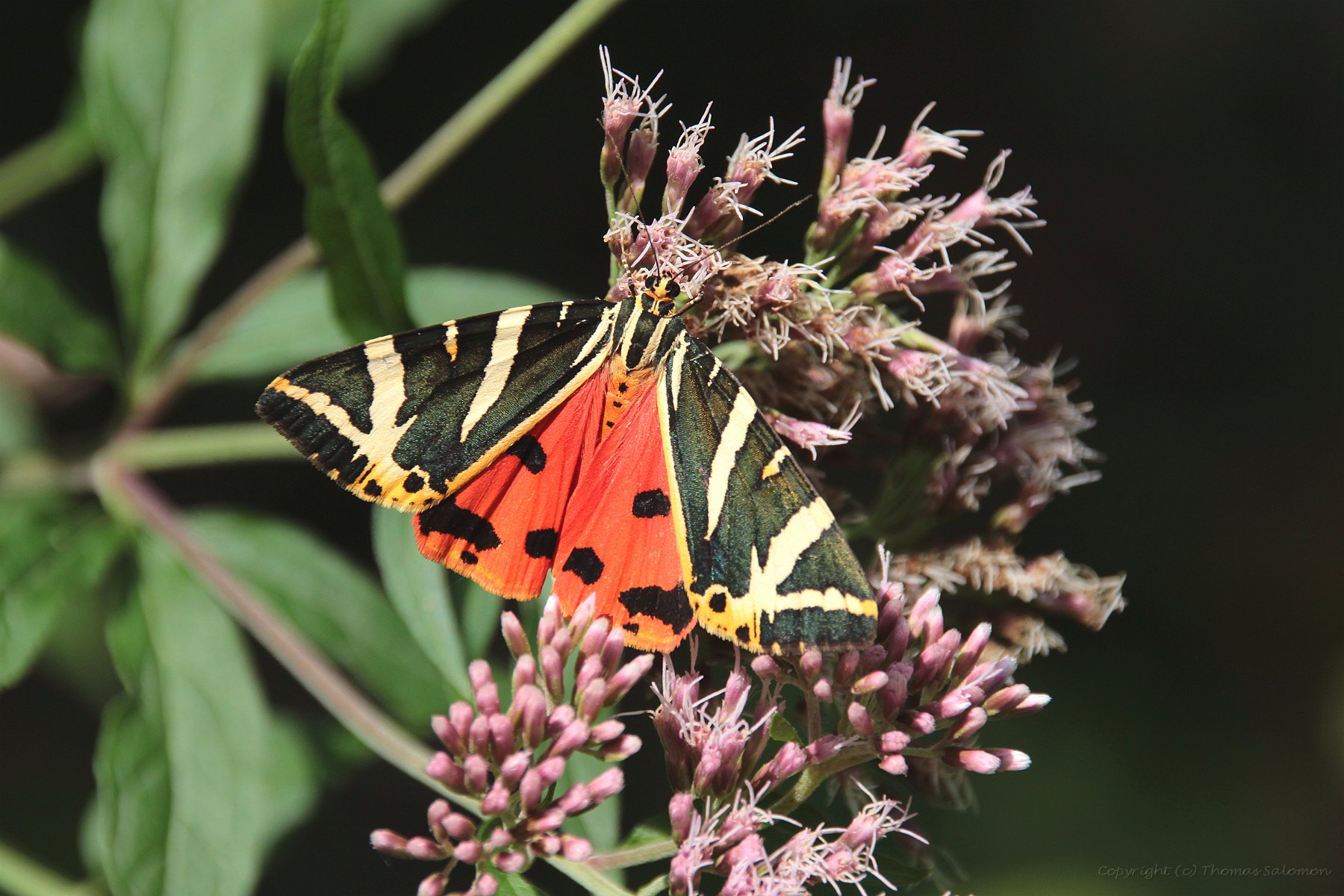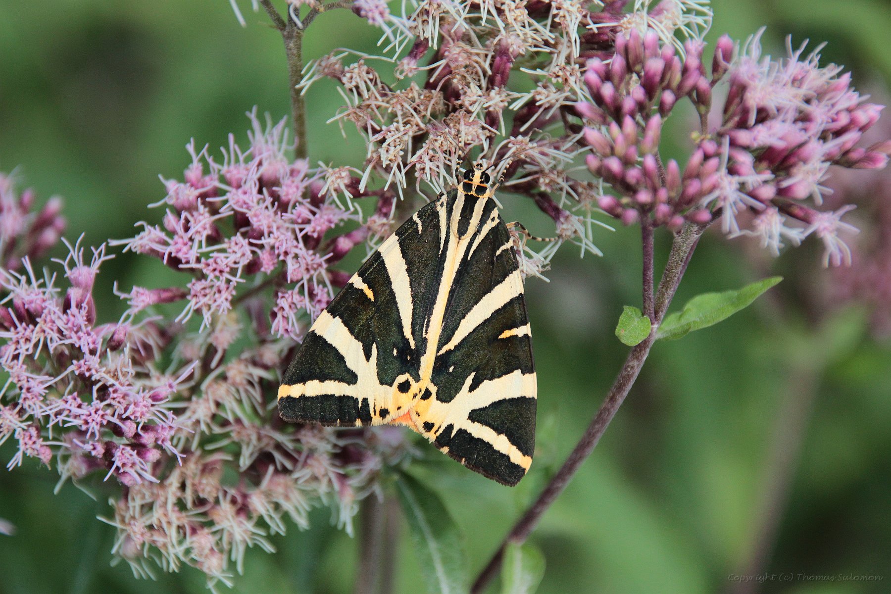 Russischer Bär (Euplagia quadripunctaria) an Dost (Sermerio am Gardasee, Italien) |