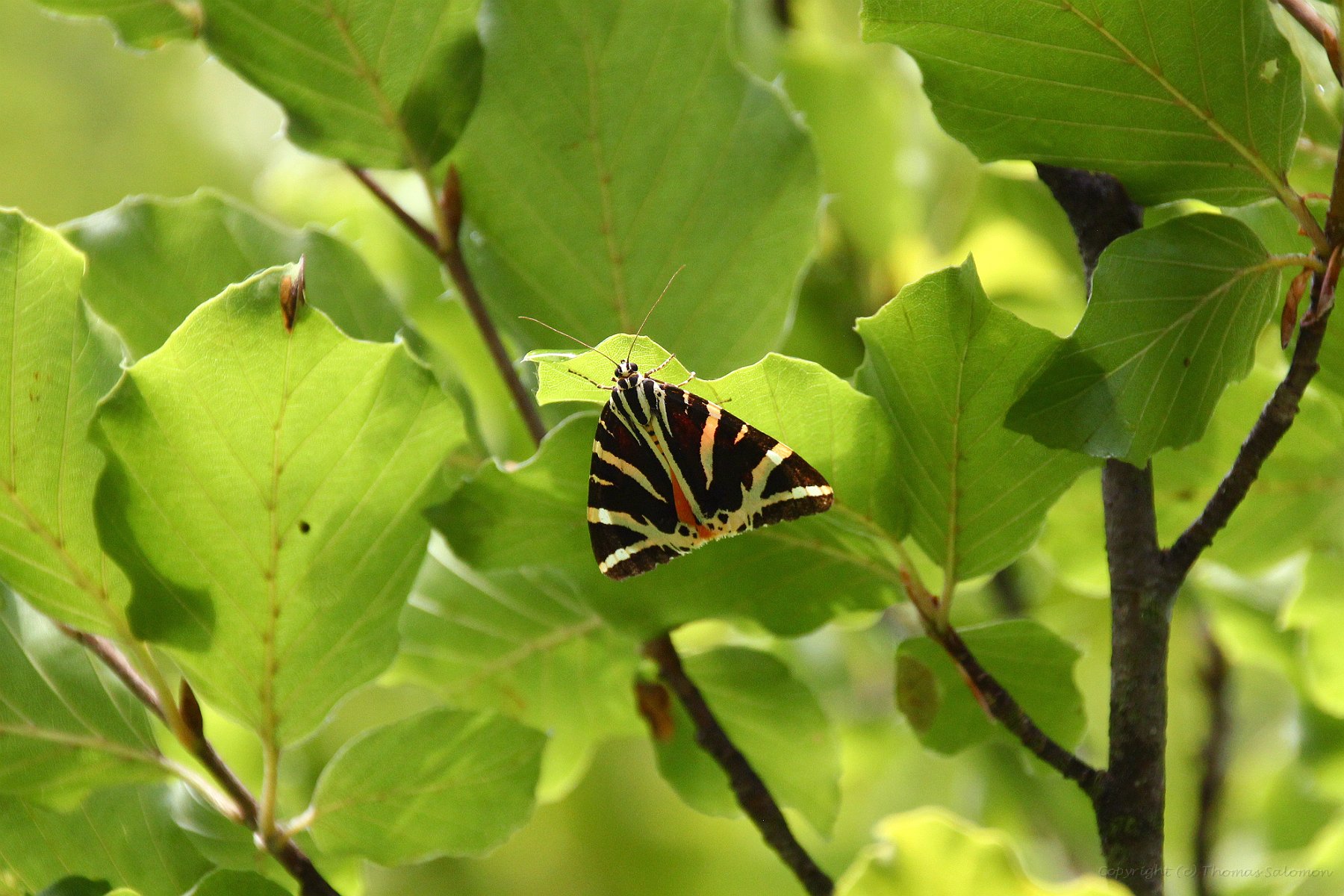 Russischer Bär (Euplagia quadripunctaria) - hier kann man die roten Hinterflügel besser erkennen. |