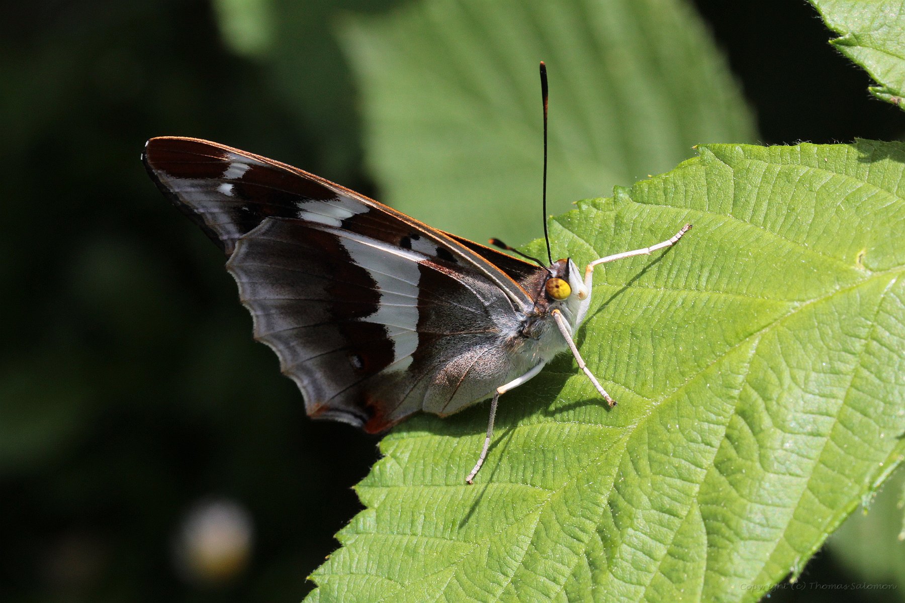 Ein Weibchen des Großen Schillerfalters (Apatura iris) - das Auge unten am vorderflügel ist verdeckt. |