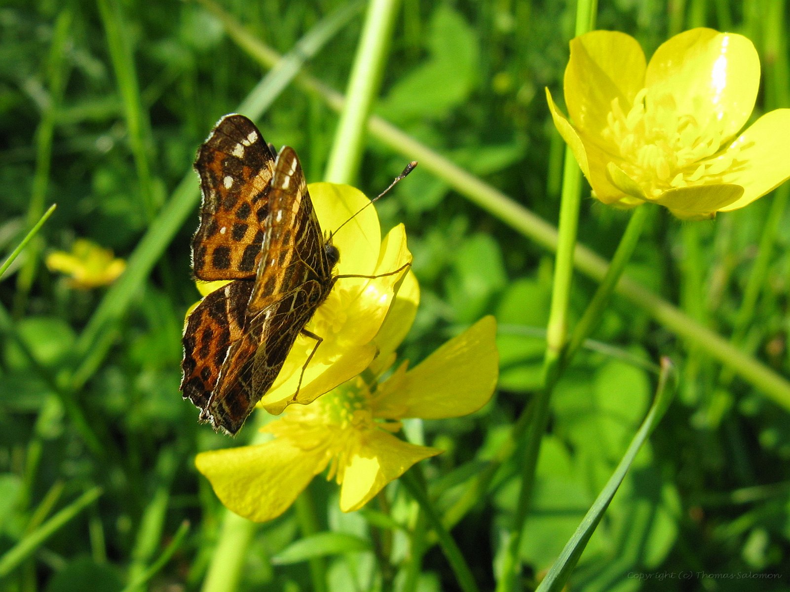 Das selbe frisch geschlüpfte Landkärtchen (Araschnia levana) beim Aufwärmen kurz vor dem eigentlichen "Start ins Flug-Leben".