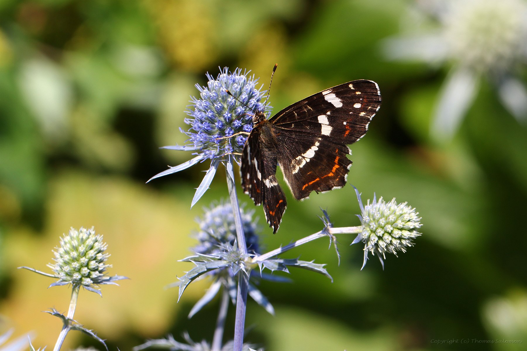 Ein Landkärtchen (Araschnia levana) beim Saugen an Mannstreu.