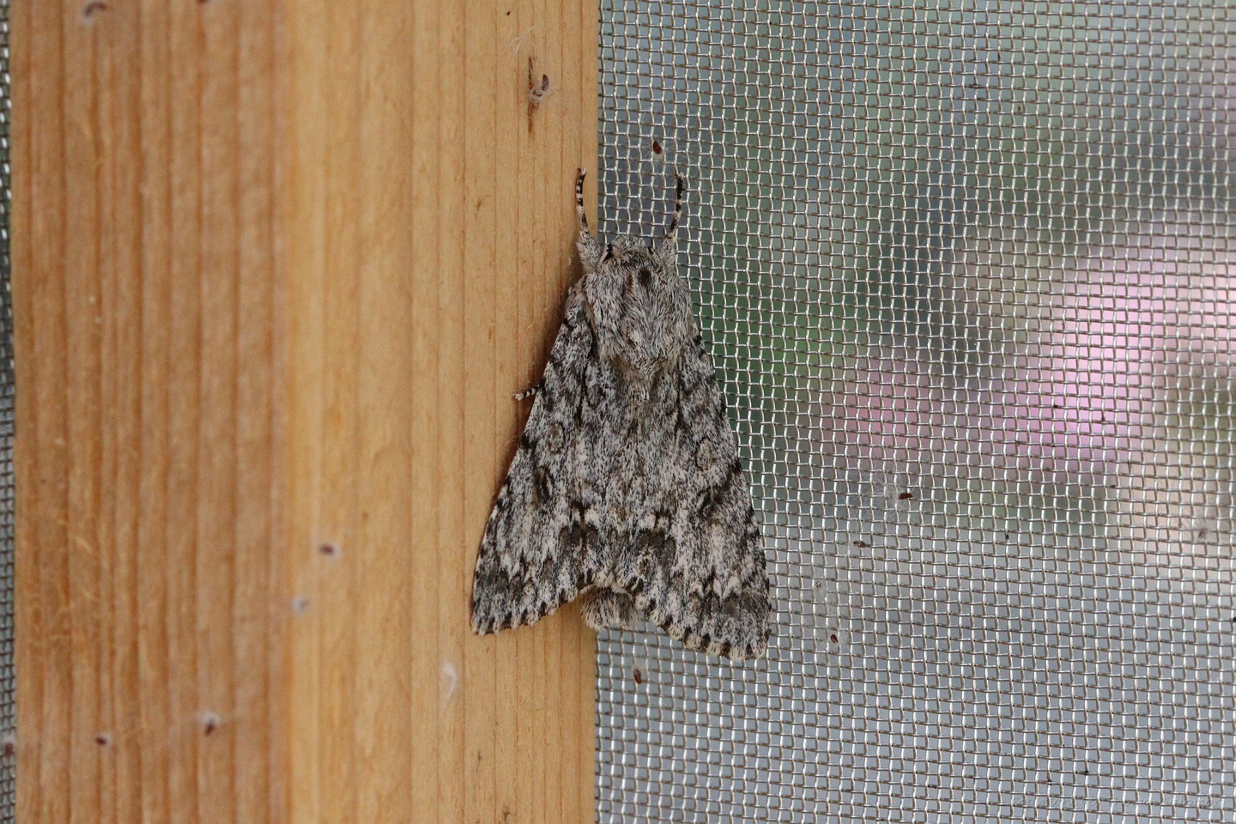 Ein frisch geschlüpftes Exemplar der Ahorn-Rindeneule (Acronicta aceris), hier noch im Zuchtkäfig. Für die sehr schöne Raupe ist der Schmetterling selber doch etwas ... 'dürftig'.