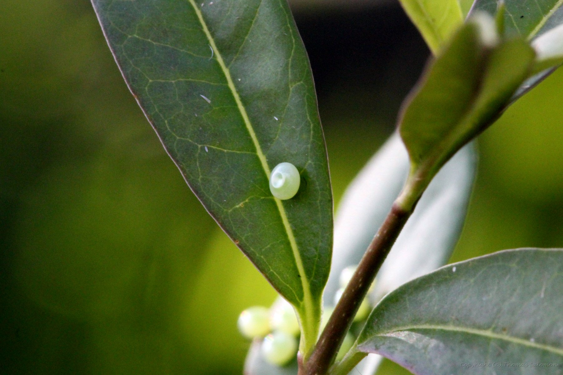 Eigelege des Ligusterschwärmers (Sphinx ligustri) an Liguster.
