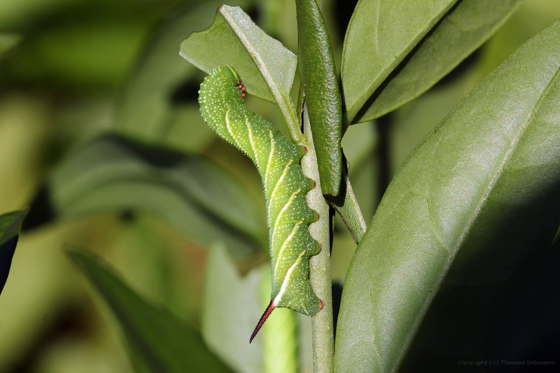 Wahre Fressmaschinen: die ausgewachsenen Raupen des Ligusterschwärmers (ca. 10 cm!) fressen Unmengen...