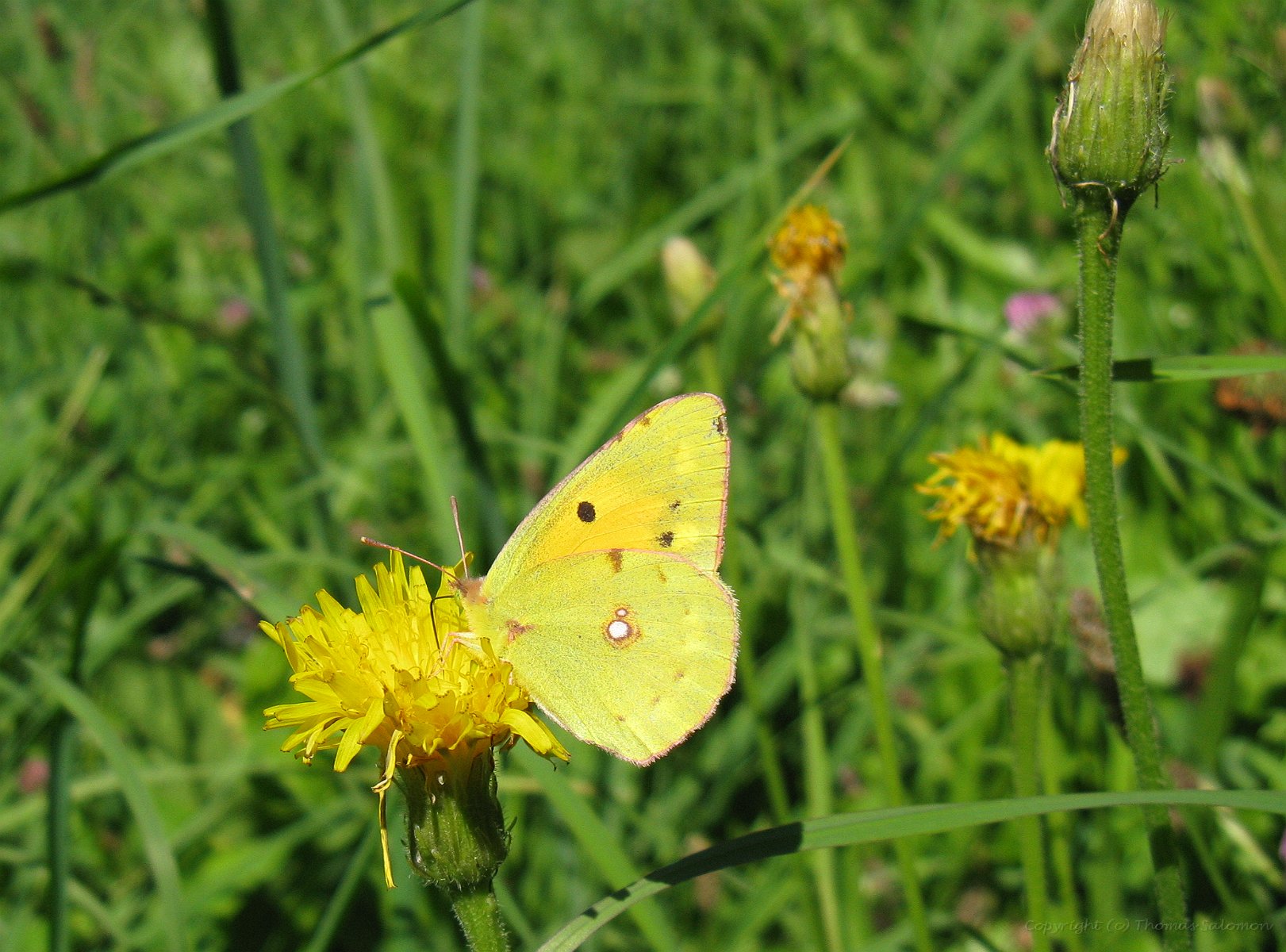 Der Postillon (Colias croceus) - einer der wenigen (hiers schlechten) Bilder mit geöffneten Flügeln. |