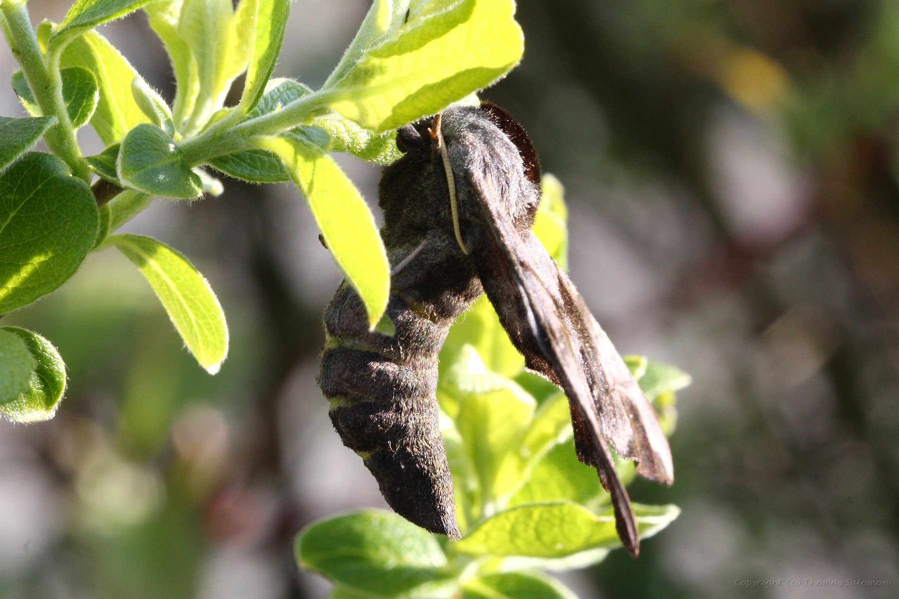 Dieses Abendpfauenauge (Smerinthus ocellata, hier ein Weibchen) habe ich für das Foto hier abgesetzt - normalerweise sind die nur an dunklen Stellen an Bäumen.