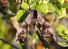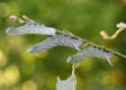 Typische Stellung der Raupen des Abendpfauenauges (Smerinthus ocellata). Der Oberkörper ragt schräg in die Luft.