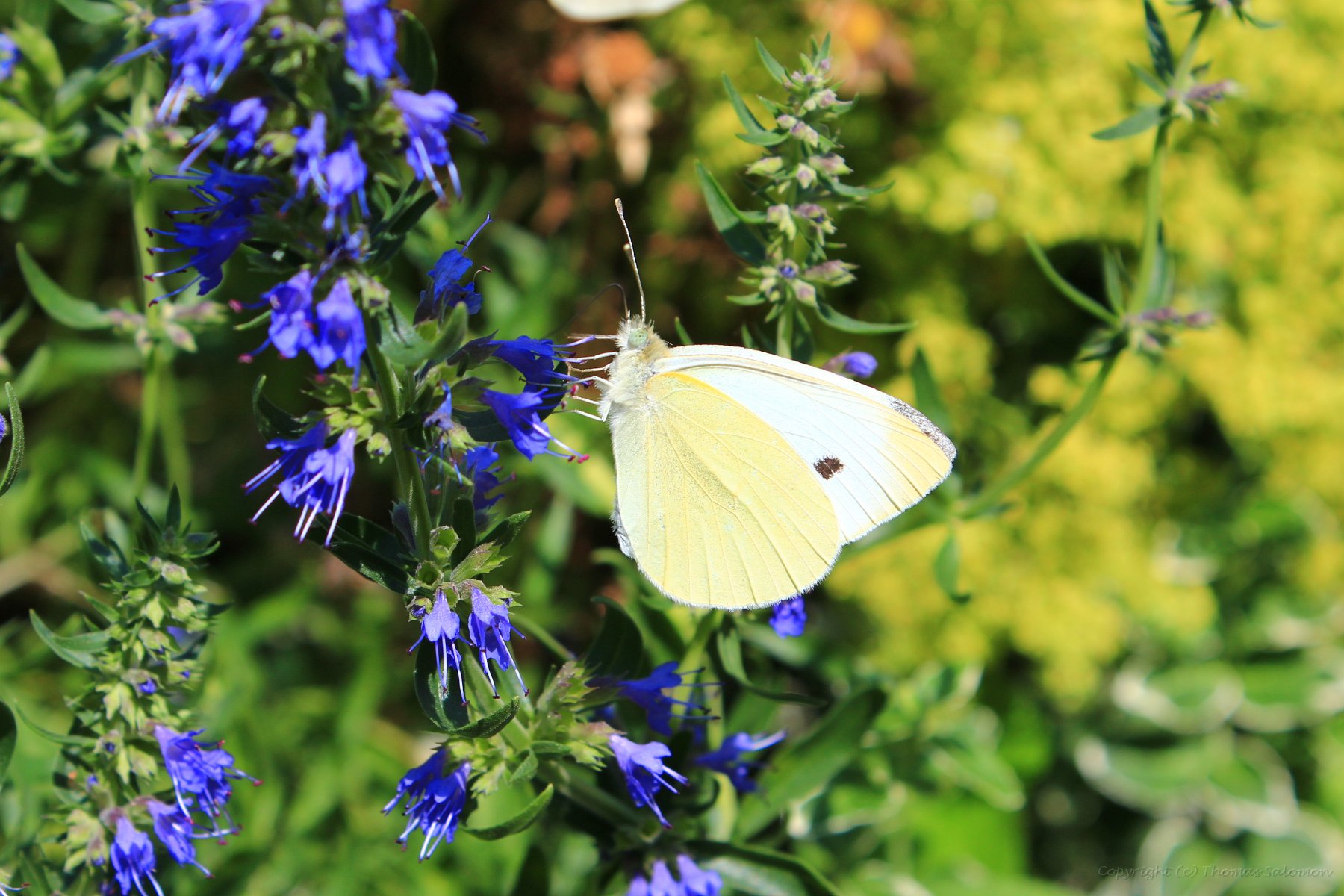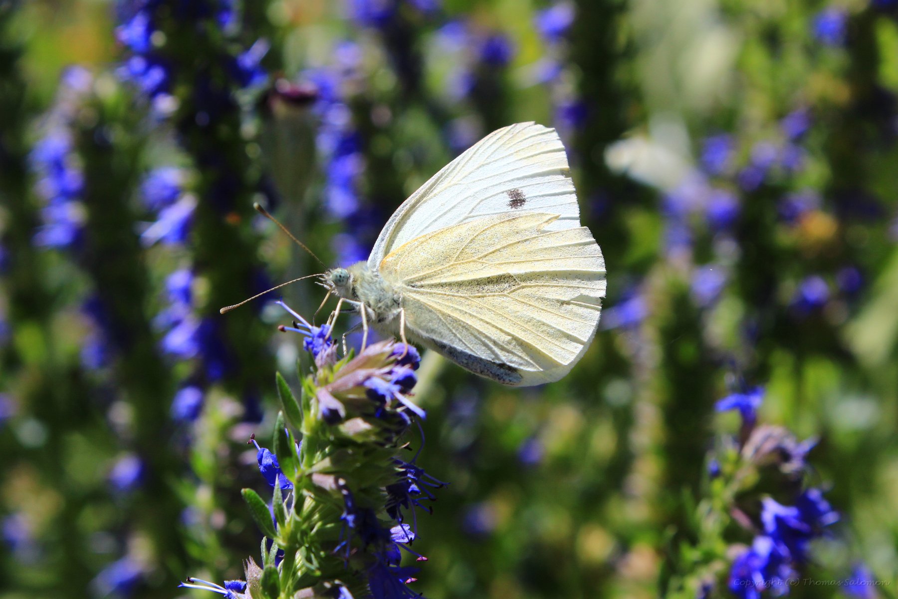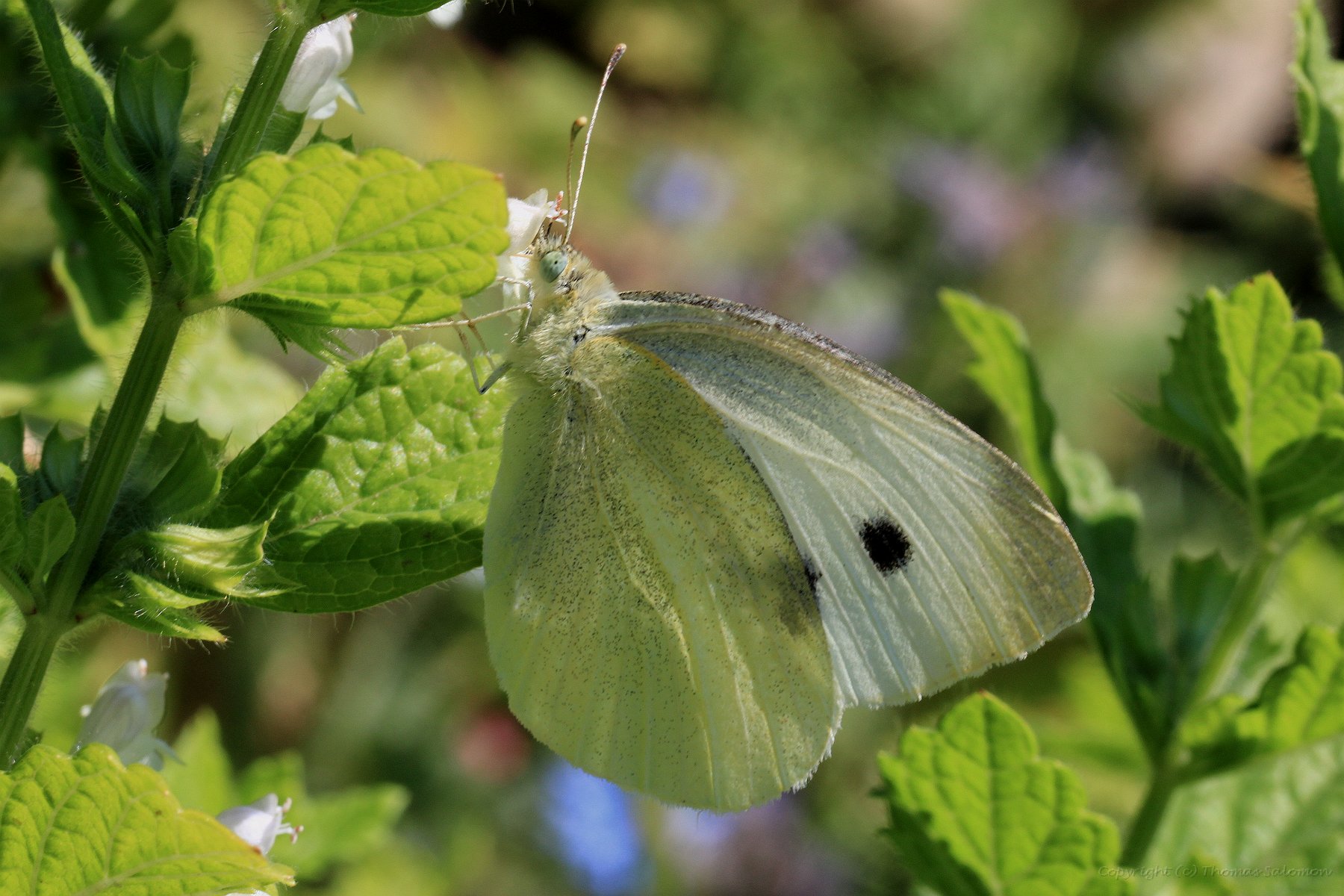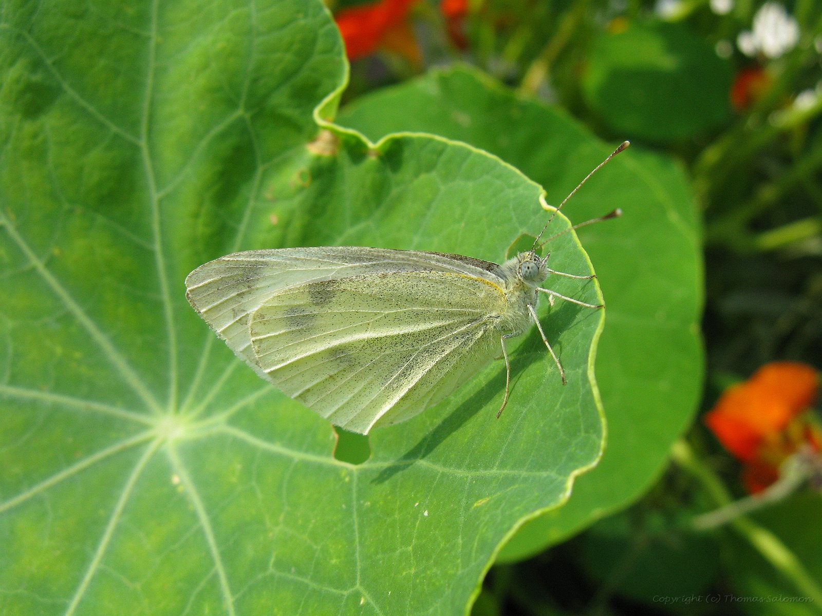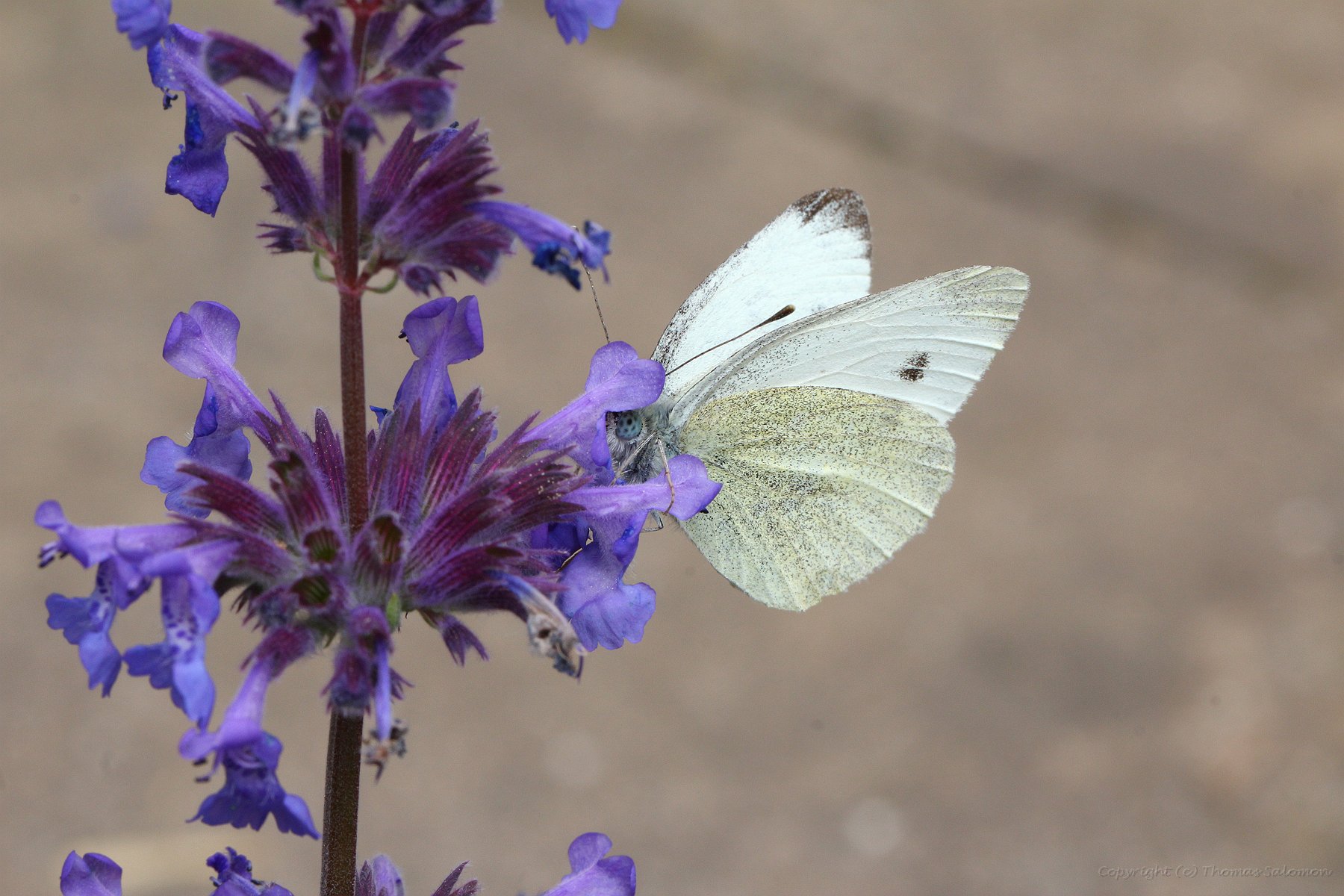 Dieser Kohlweißling (Pieris Brassicae) verschweindet fsat in den Blüten.