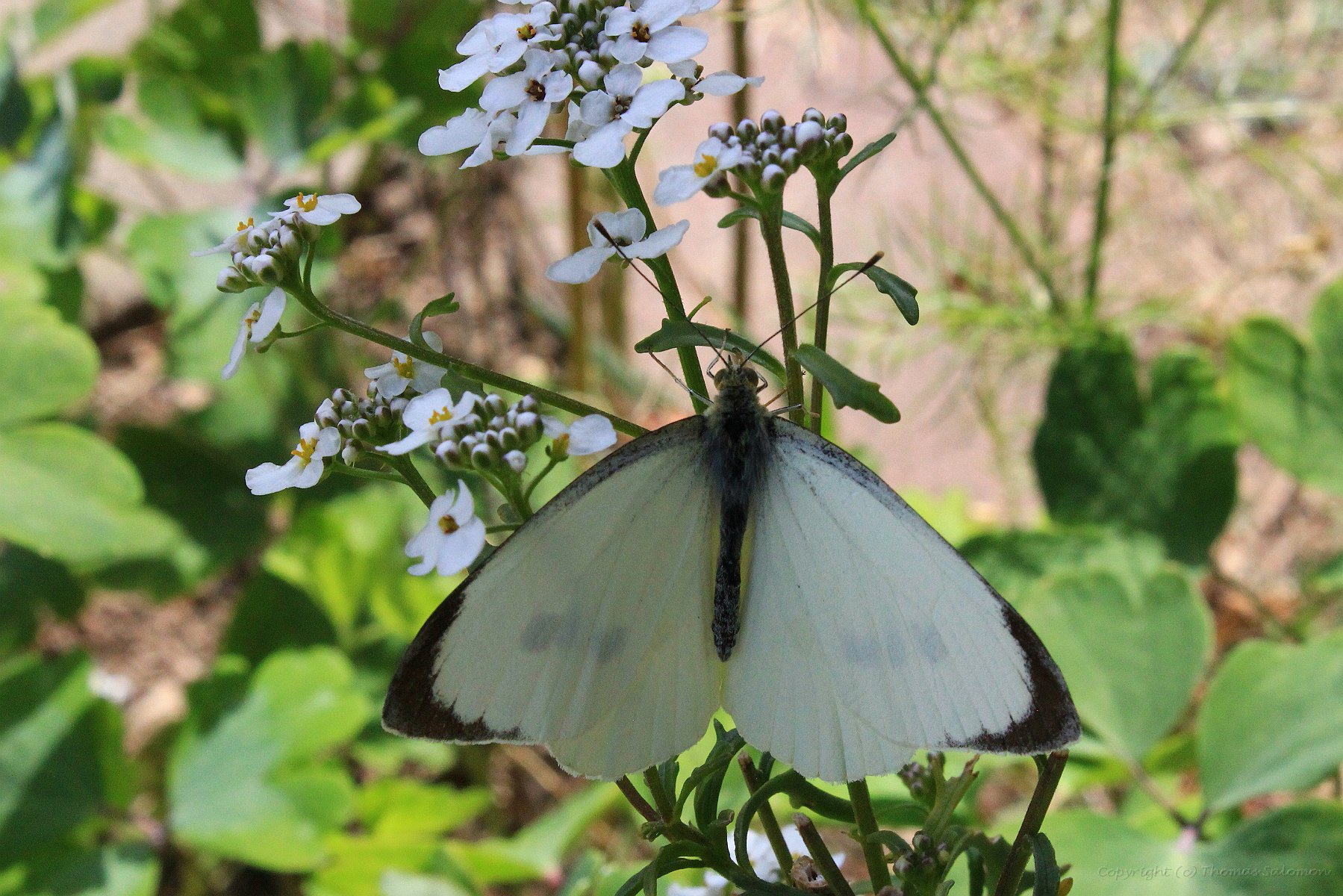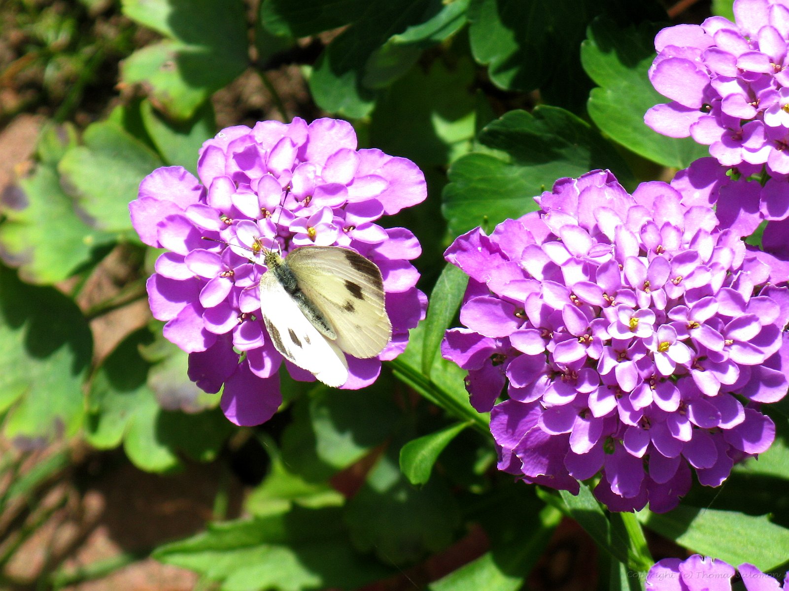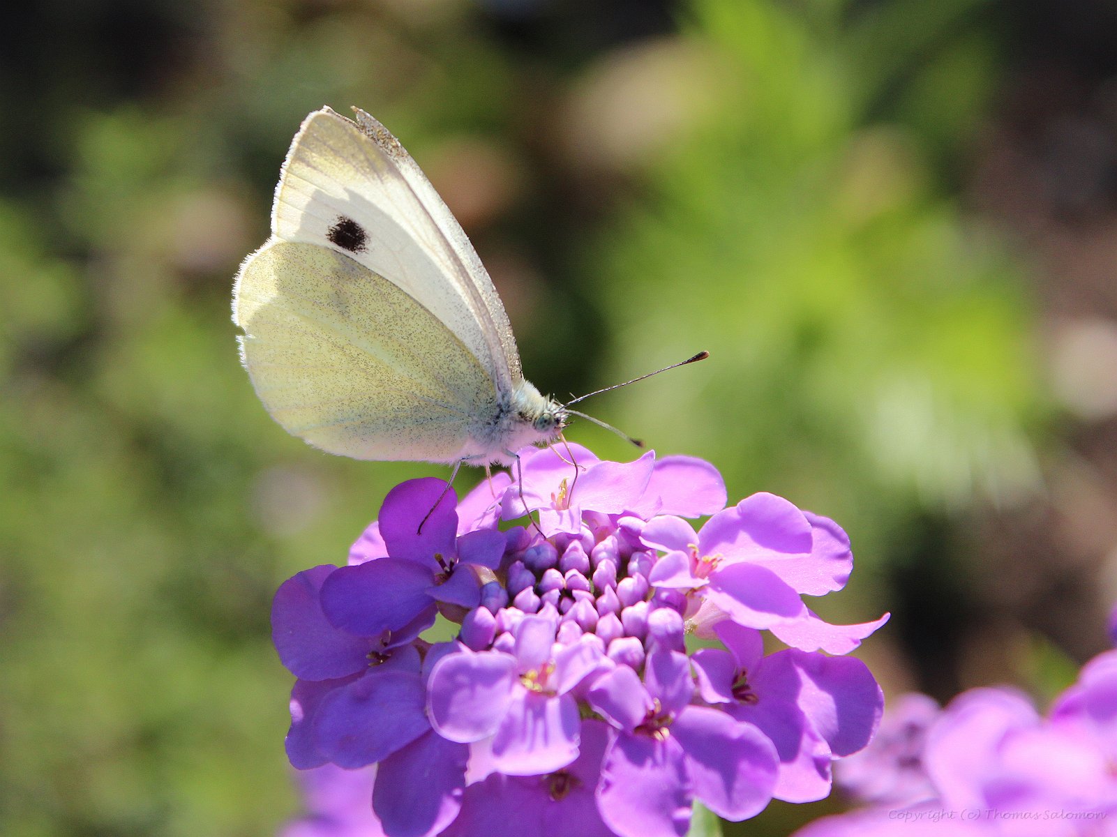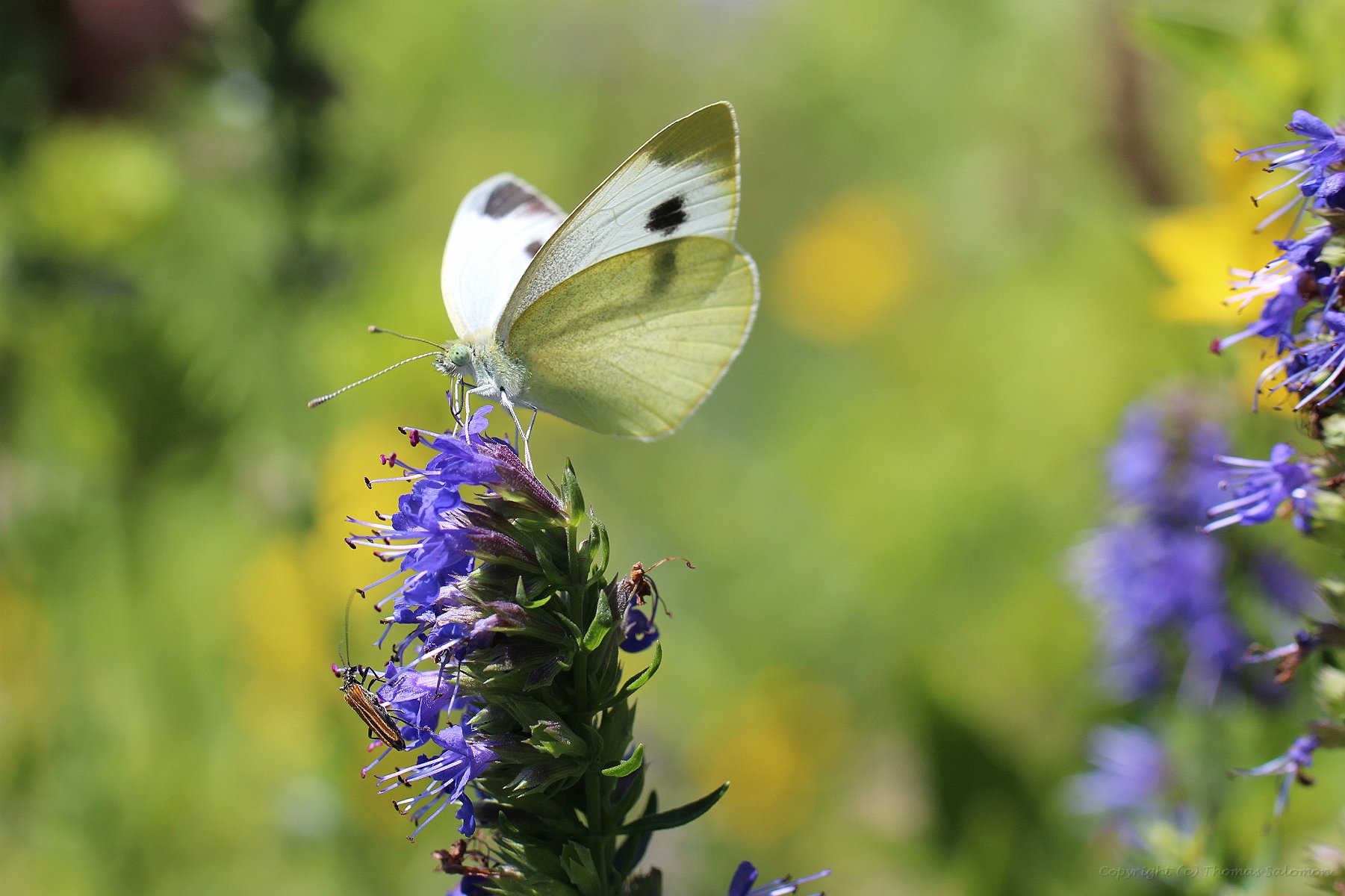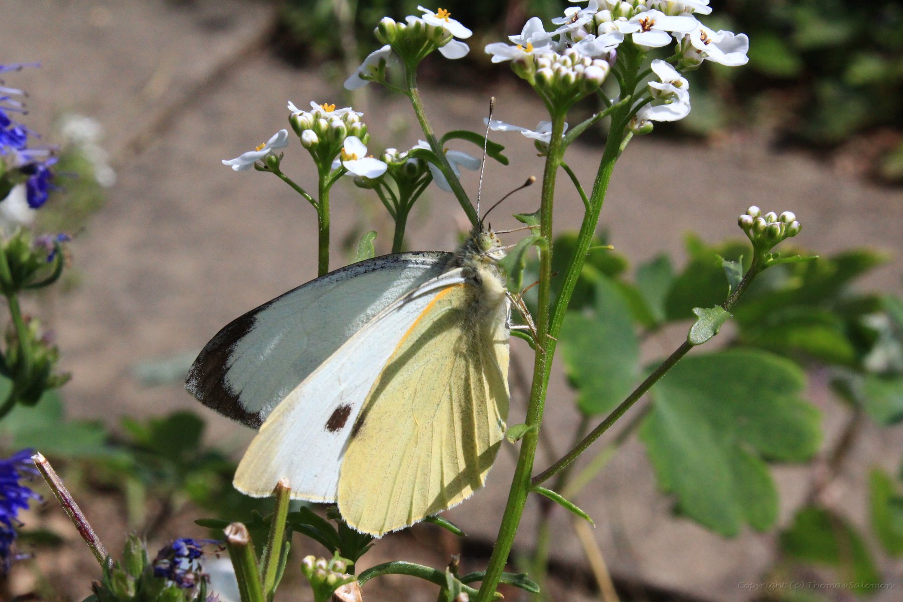 Dieser Kohlweißling (Pieris Brassicae) verschweindet fsat in den Blüten.
