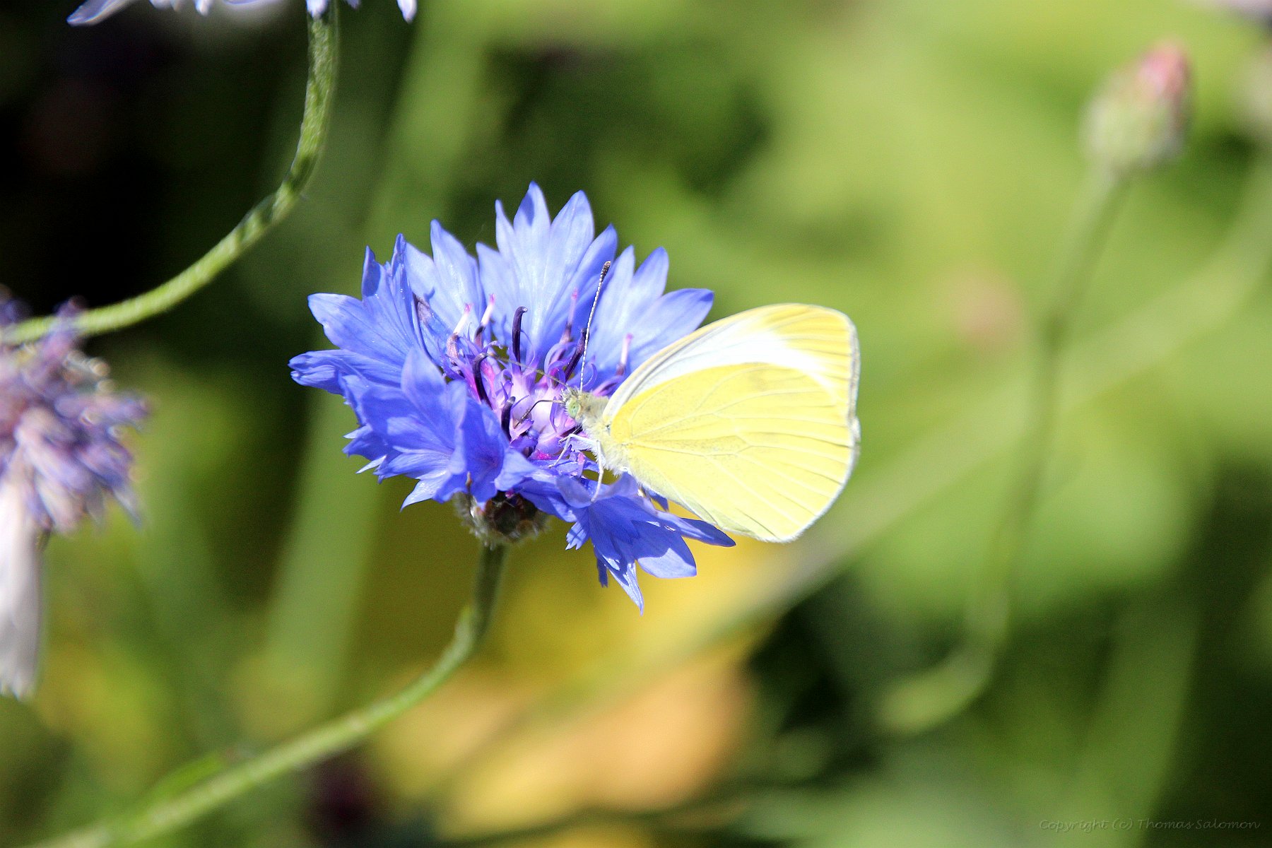 Pieris Brassicae (Kleiner Kohlweißling) beim Saugen an Kornblume.