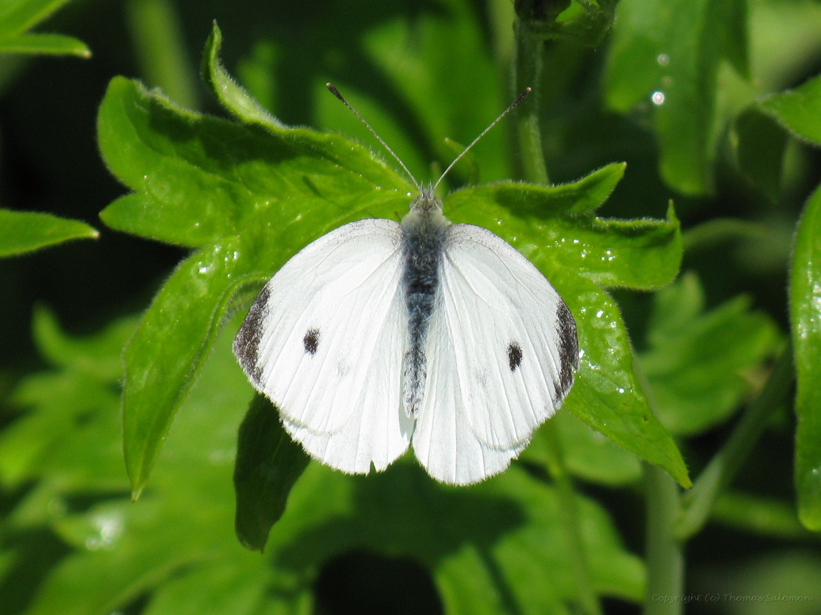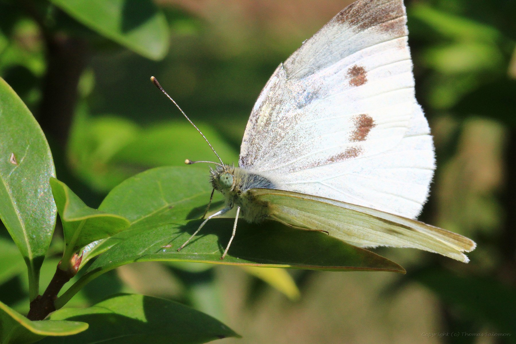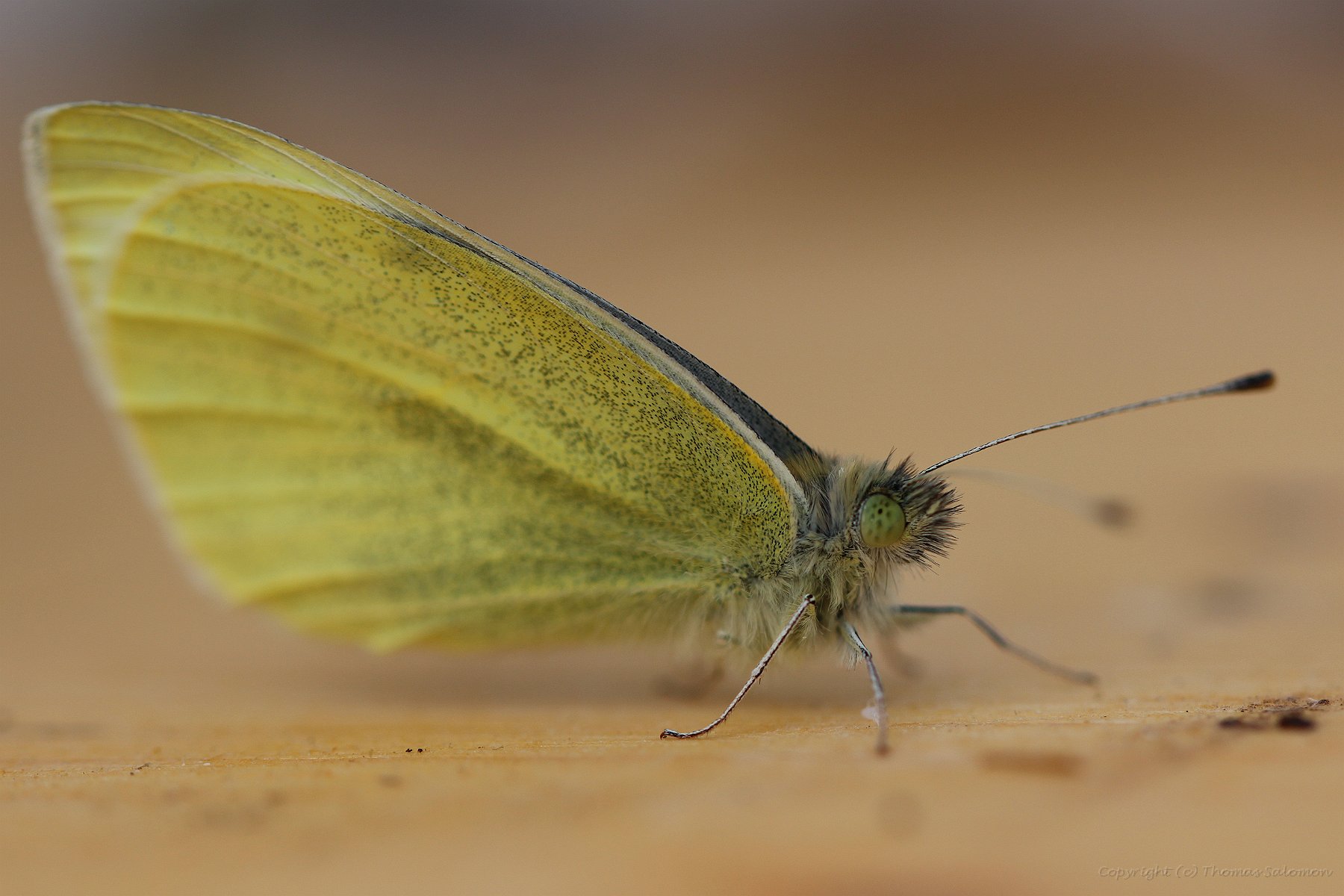Dieser frisch geschlüpfte Pieris Brassicae "bläst" gerade die Flügel auf.