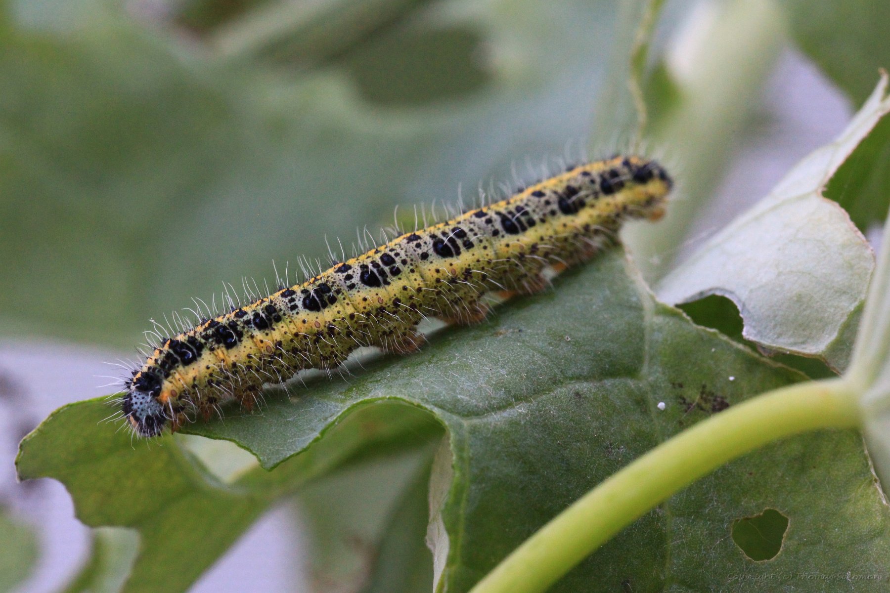Kleine Räupchen (ca. 1 cm groß) von Pieris Brassicae
