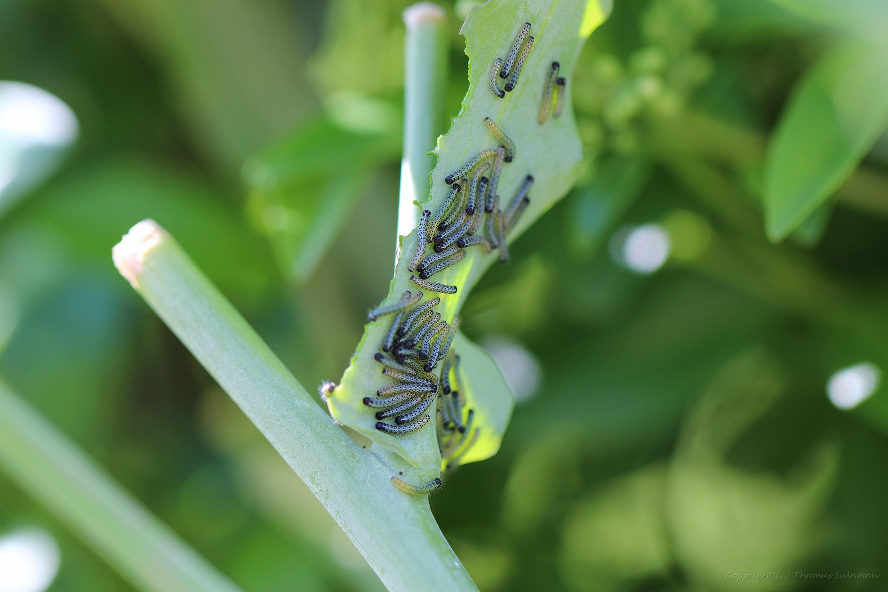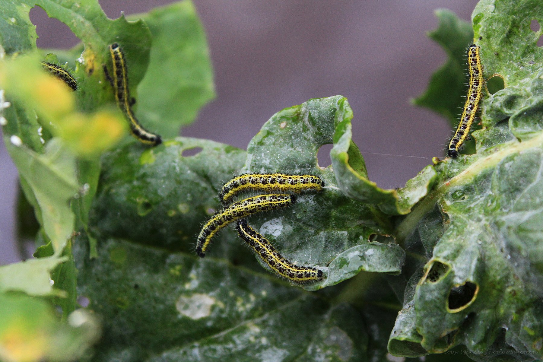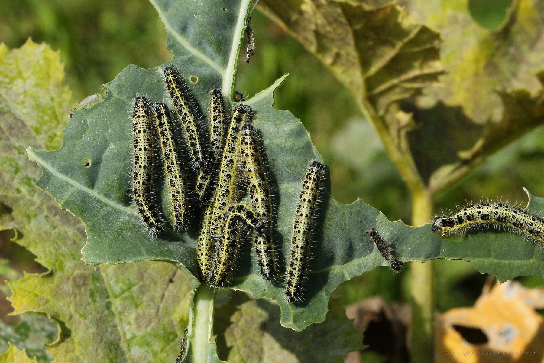 Die Raupen des großen Kohlweißlings (Pieris Brassicae) sind meist gesellig.