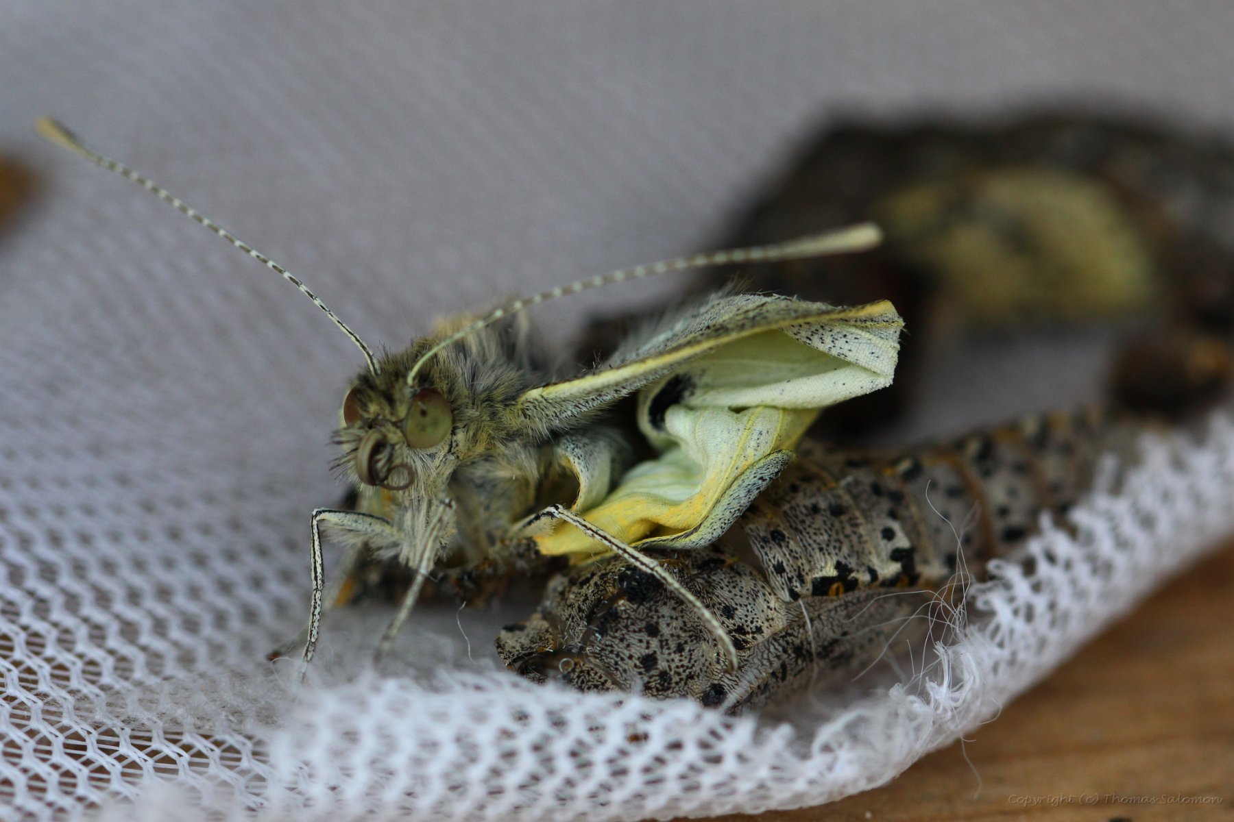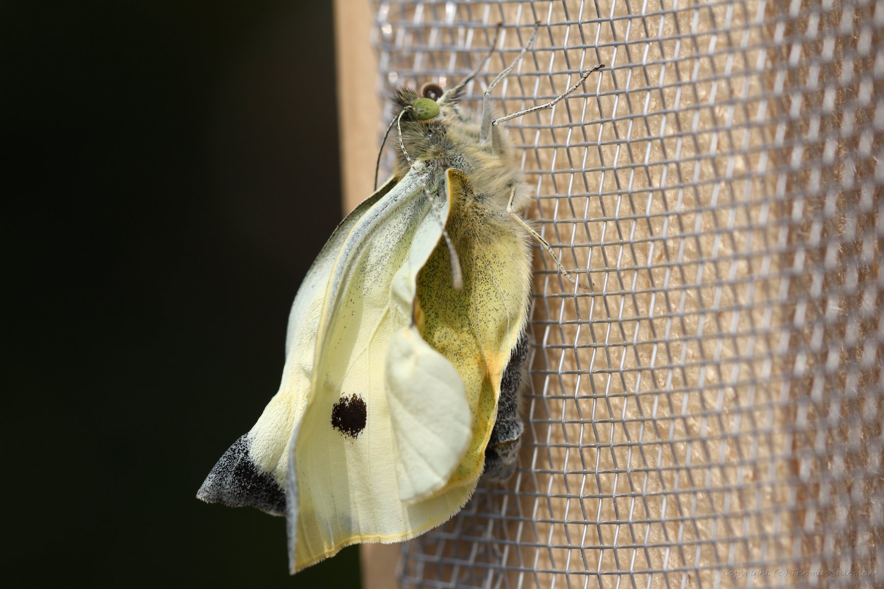 Pieris Brassicae beim Schlüpfen aus der Puppe.