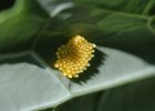 Eigelege (ein sog. Eispiegel) des großen Kohlweißlings (Pieris brassicae)