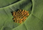 Eigelege von Pieris brassicae kurz vor dem Schlüpfen der Räupchen.