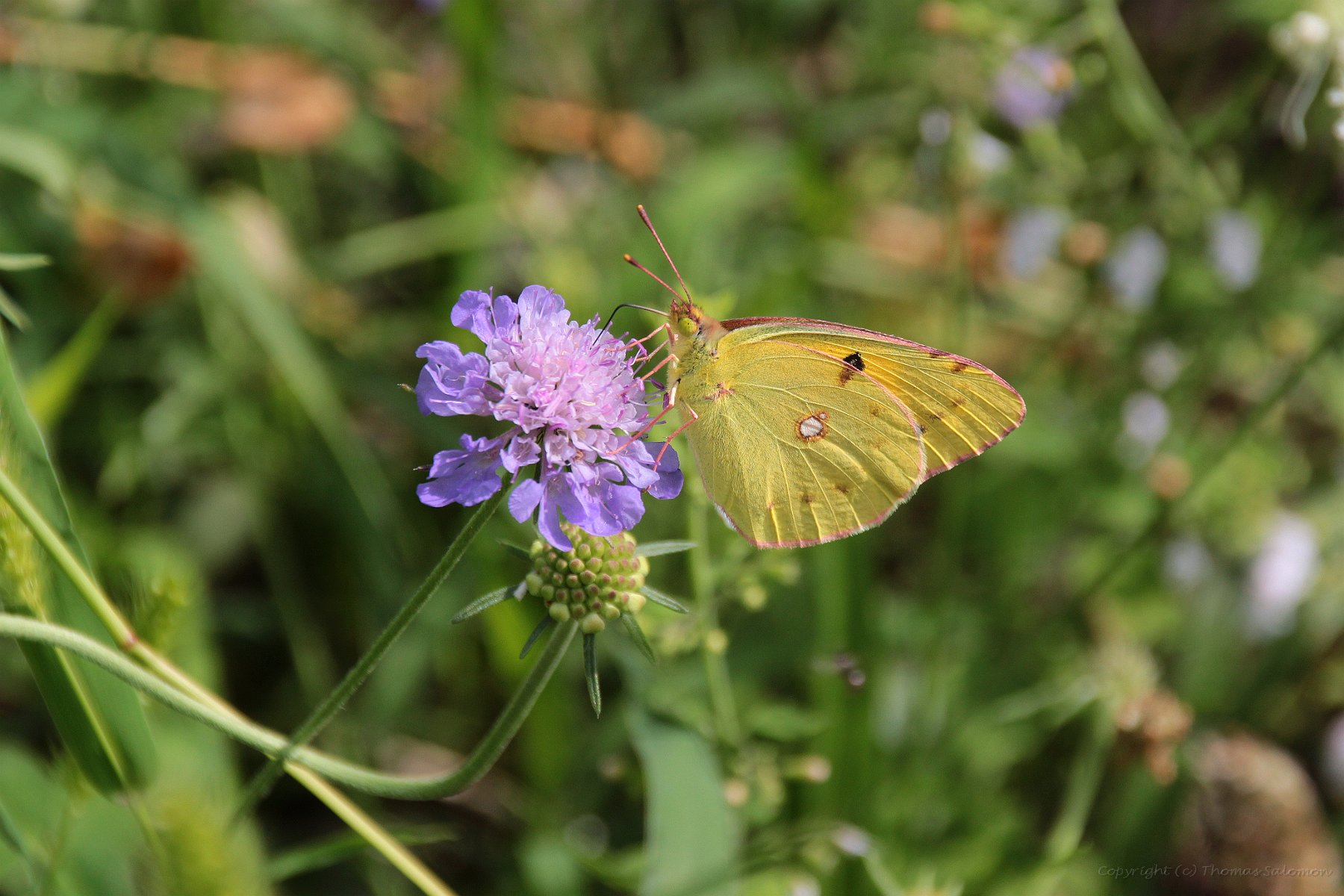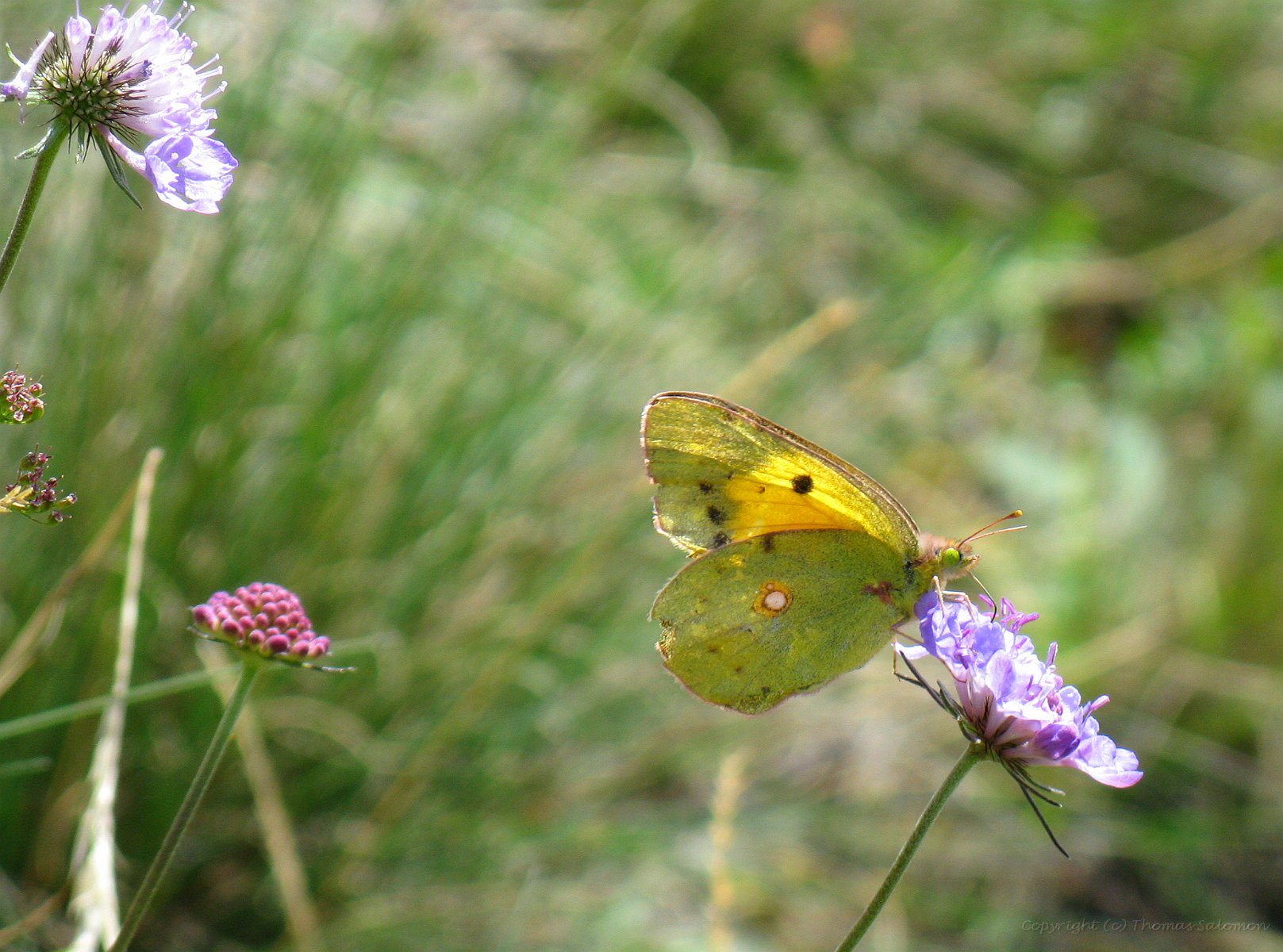 Der Postillon (Colias croceus) - aber schon arg zerrupft.
