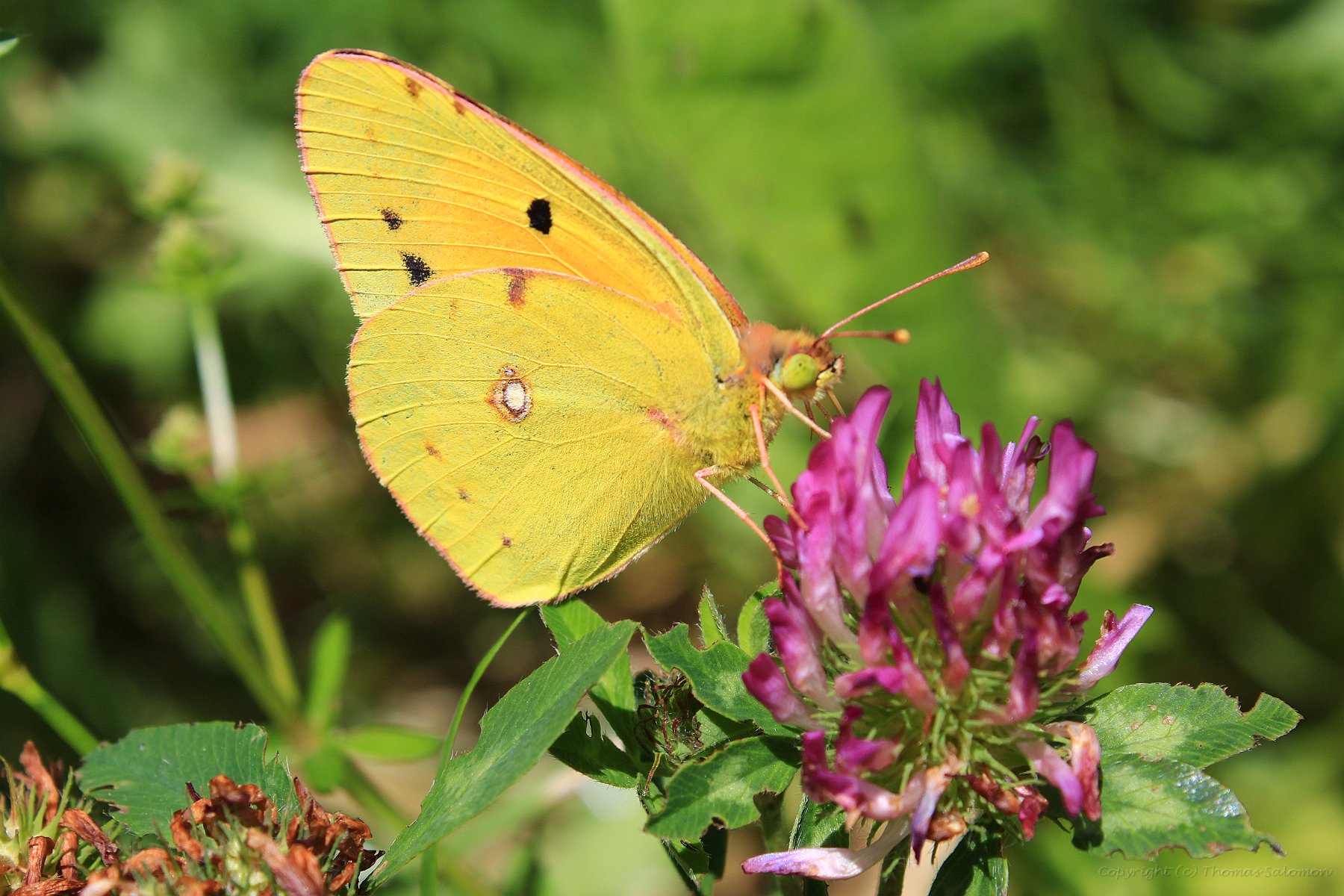 IMG 3779    Der Postillon (Colias croceus) - einer der wenigen (hiers schlechten) Bilder mit geöffneten Flügeln.